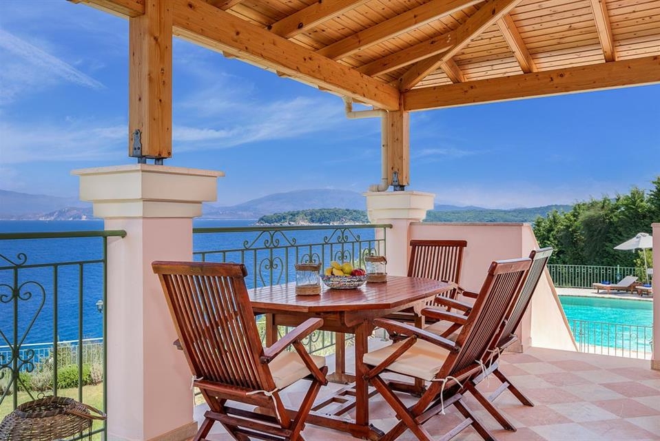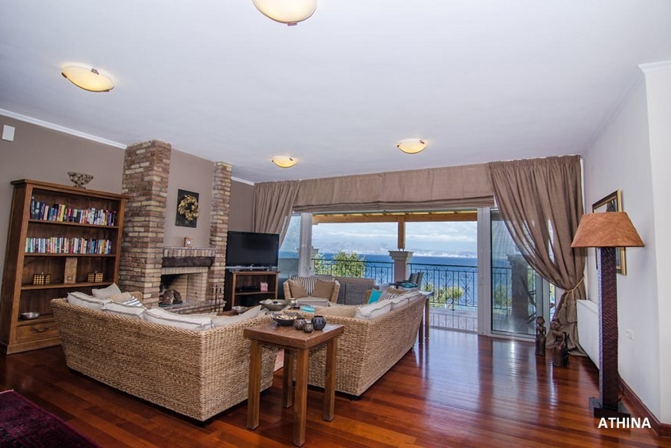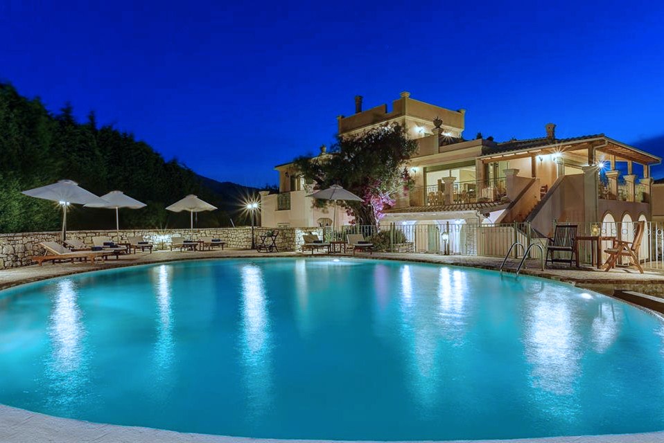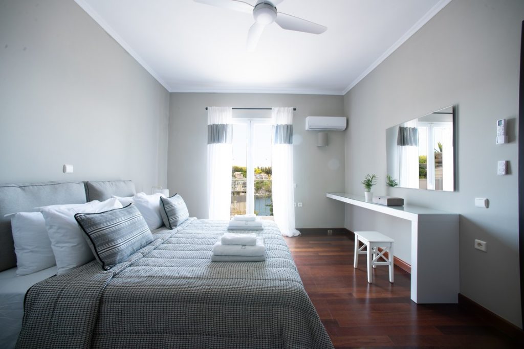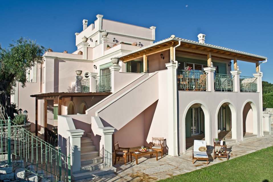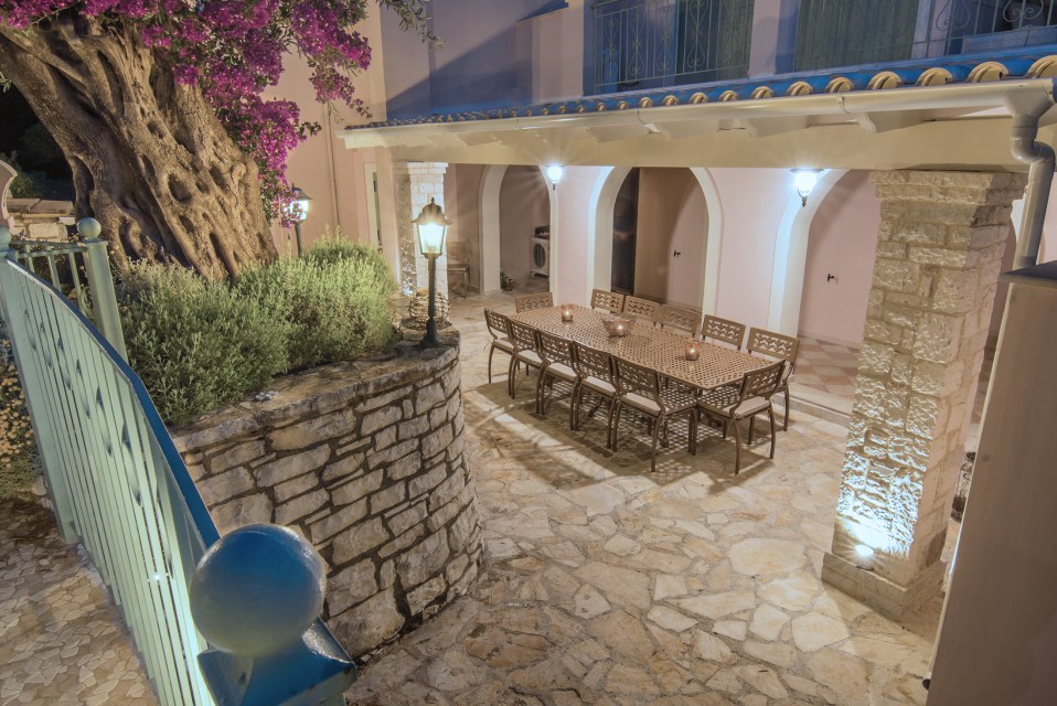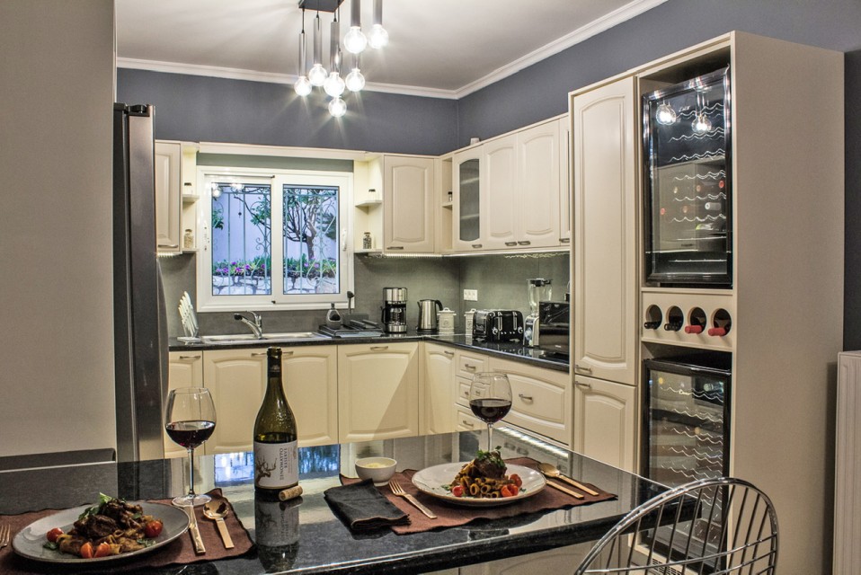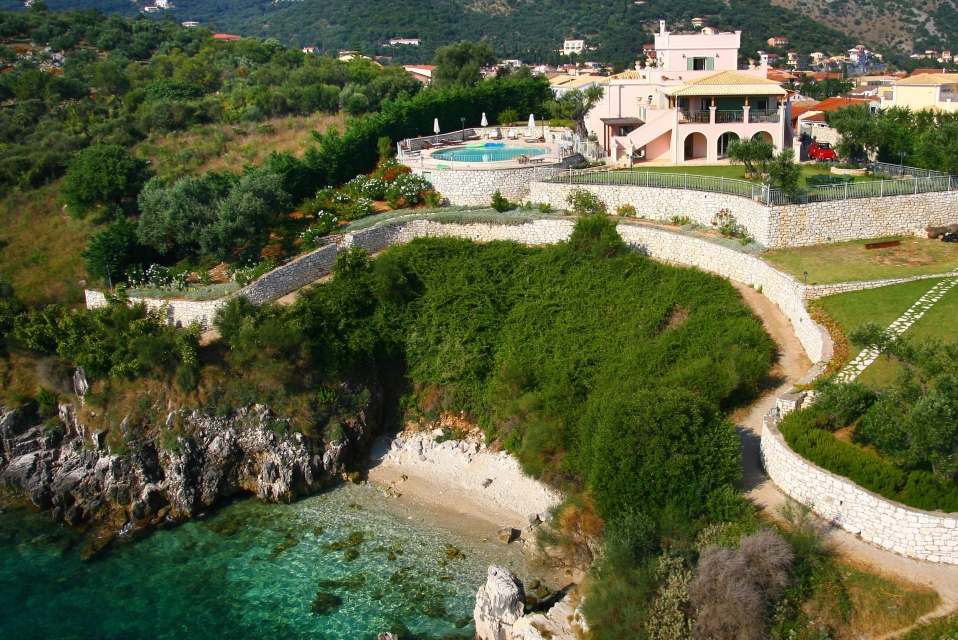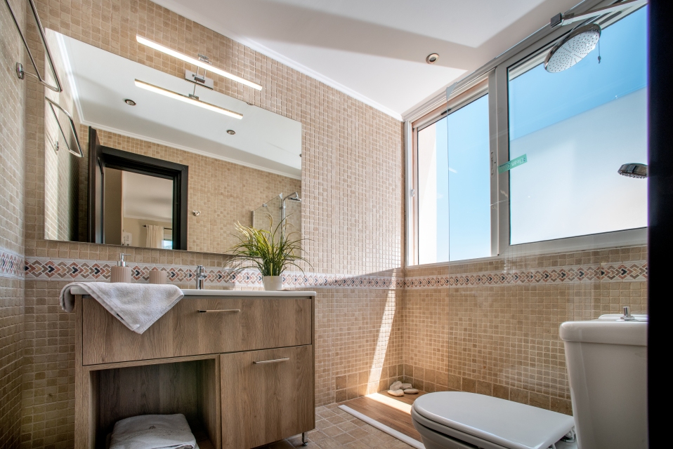 Corfu Santa Villa is a three-level building and consists of the ground floor, the first and the second floor. The ground floor has a play room with pool table, a table for cards, TV and a desk. There is also a fully equipped kitchen (oven – ceramic hearth – dishwasher – refrigerator – microwave) and laundry room. There is also two bedrooms with independent bathrooms and dressing room, and a WC.